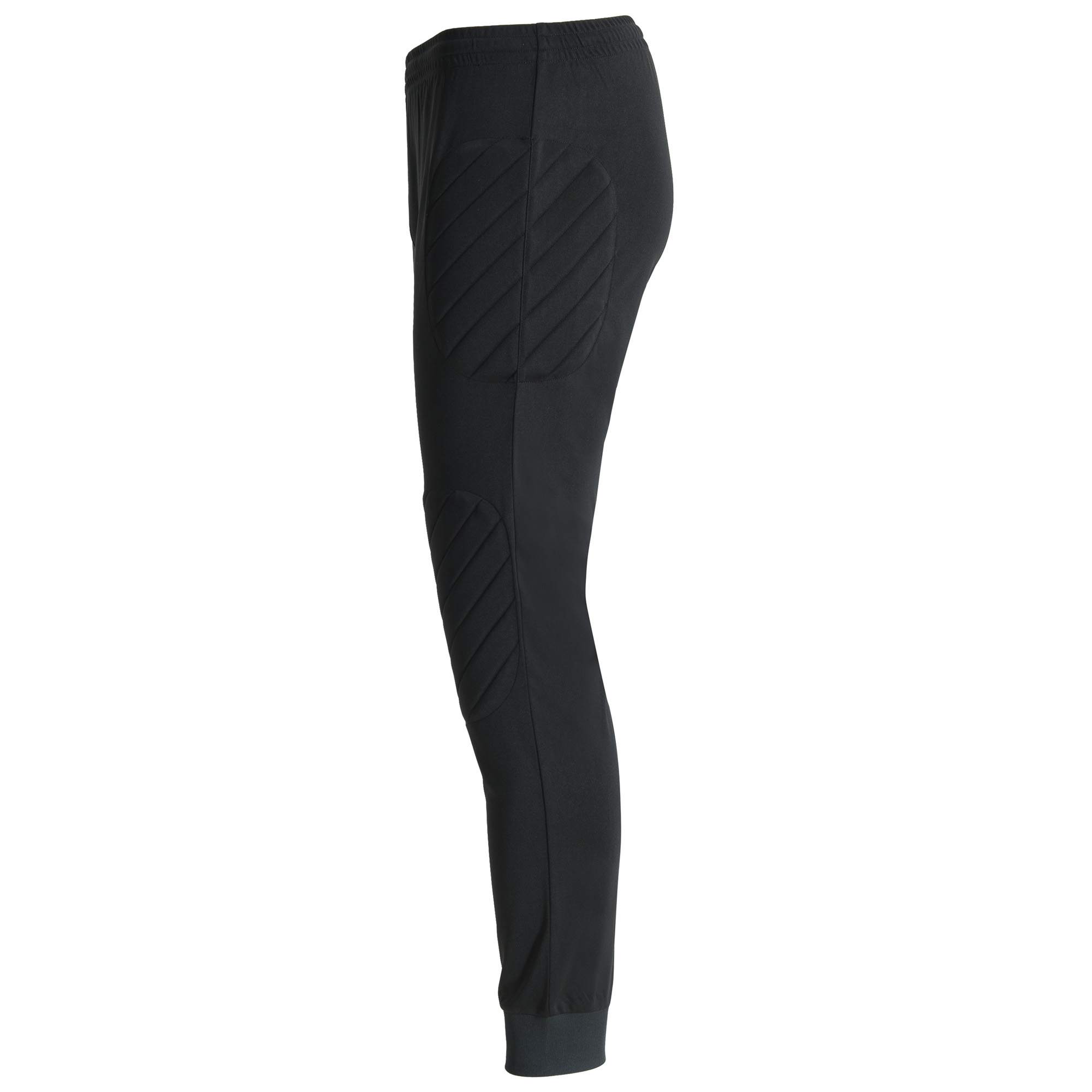 Pantalón largo de portero unisex, con inserciones laterales y rodilleras acolchadas. Cinturilla elástica con cordón interior ajustable y bajo con puño.Composición: 100% poliéster, 250 g/m².Observaciones: *Etiqueta removible. *Tejido técnico. *Modelo transpirable.