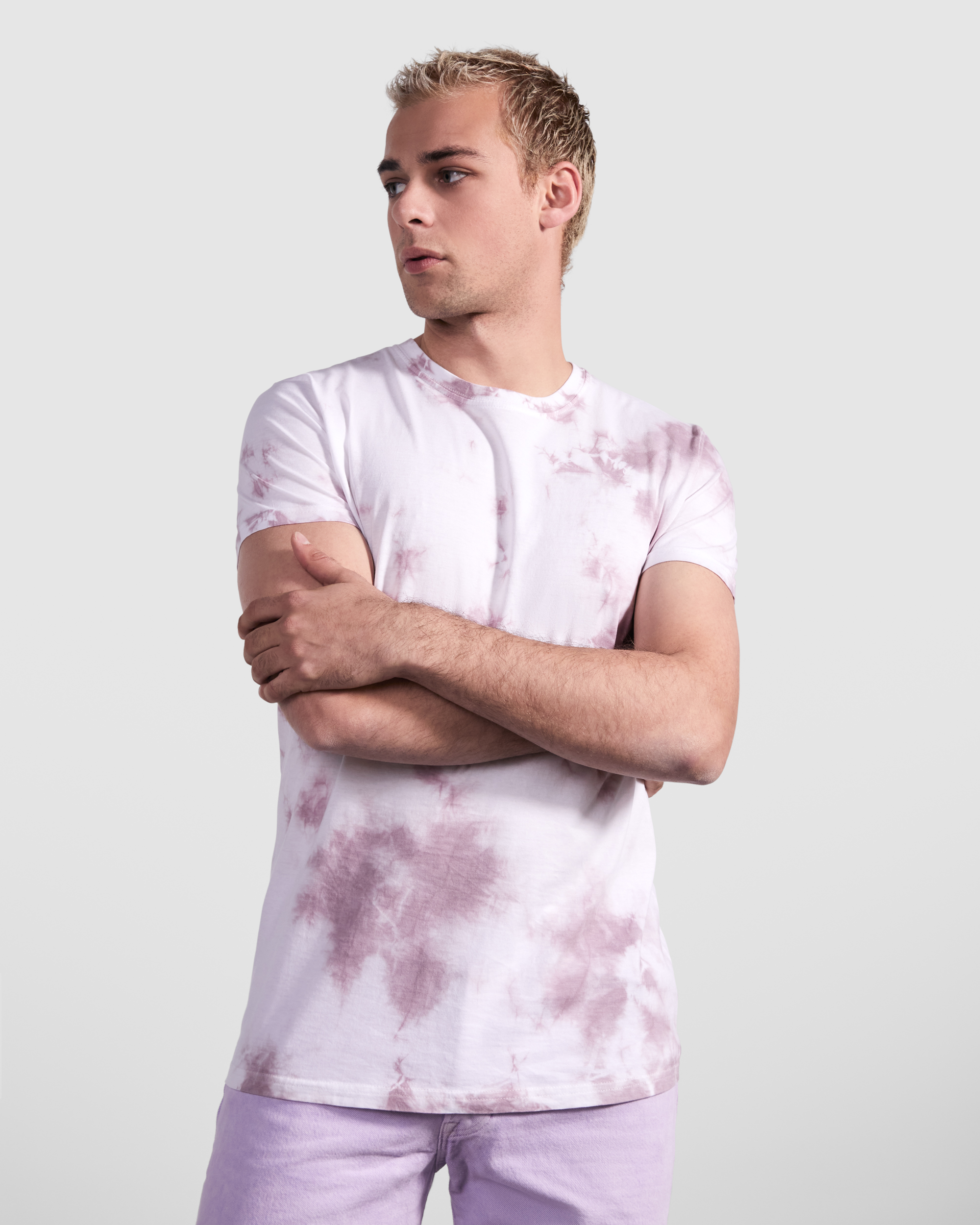 Camiseta tubular de manga corta unisex efecto Tie-Dye. Cuello redondo en canalé 1x1 con cubre costuras en cuello. El acabado y la tonalidad de esta prenda puede variar dentro de un mismo tono. Composición: 100% algodón peinado, punto liso, 160 g/m².Observaciones: *…