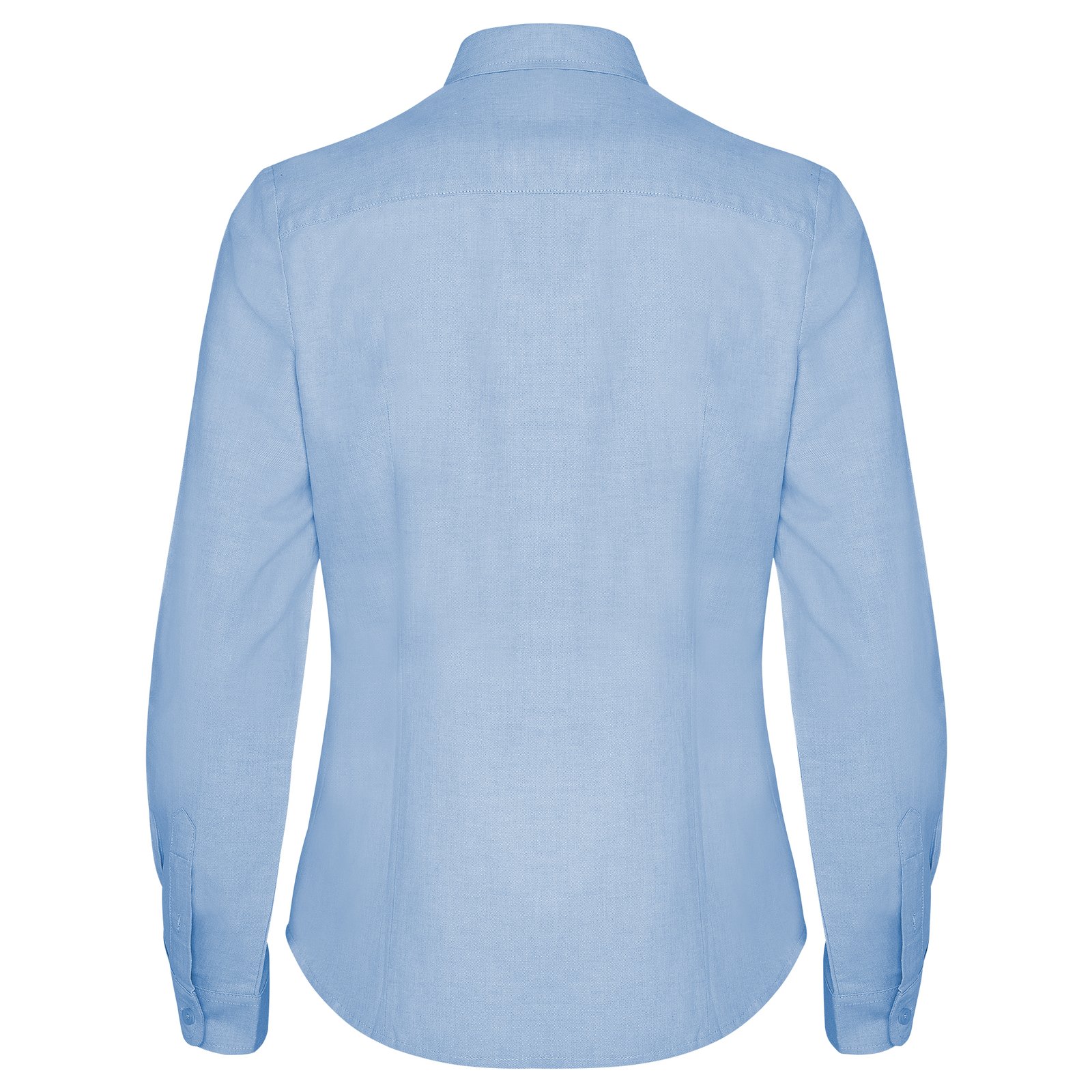 Camisa de manga larga de mujer entallada. · Pinzas en delantero y espalda. · Bolsillo frontal izquierdo. · Puño con pinzas y dos botones. · Espalda con canesú. · Bajo redondeado. Composición: 70% algodón / 30% poliéster, tejido Oxford, 140 g/m². Observaciones:…