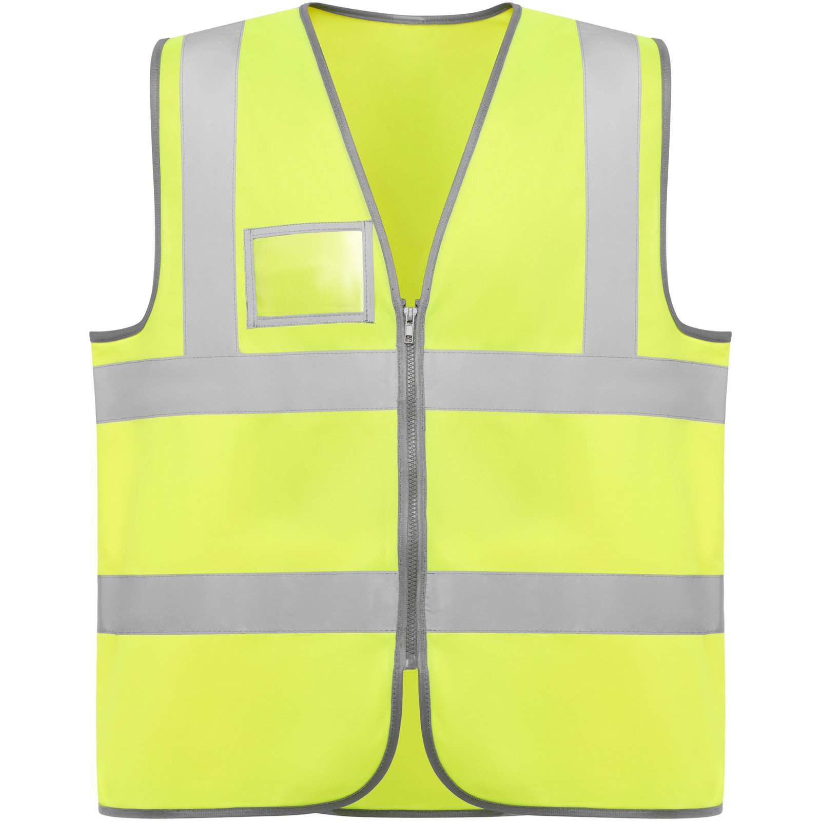 Chaleco de alta visibilidad con cremallera. · Dos cintas reflectantes horizontales en el pecho y verticales en los hombros · Bolsillo transparente en pecho derecho para identificación. Composición: 100% poliéster Observaciones: · Etiqueta removible. Certificación CE según las normas: EN ISO 13688:2013/A1:2021…