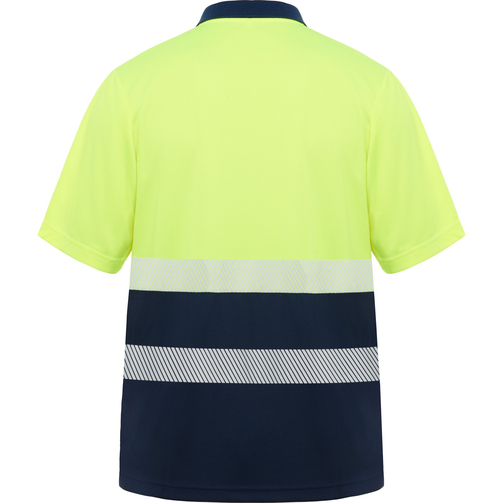Polo técnico de alta visibilidad en manga corta. · Cuello en punto canalé 1x1 · Dos cintas reflectantes segmentadas en pecho y espalda. · Tapeta con 3 botones a contraste. · Tejido anti enganches y fácil secado.Composición: 100 % polyester bird´s eye,…